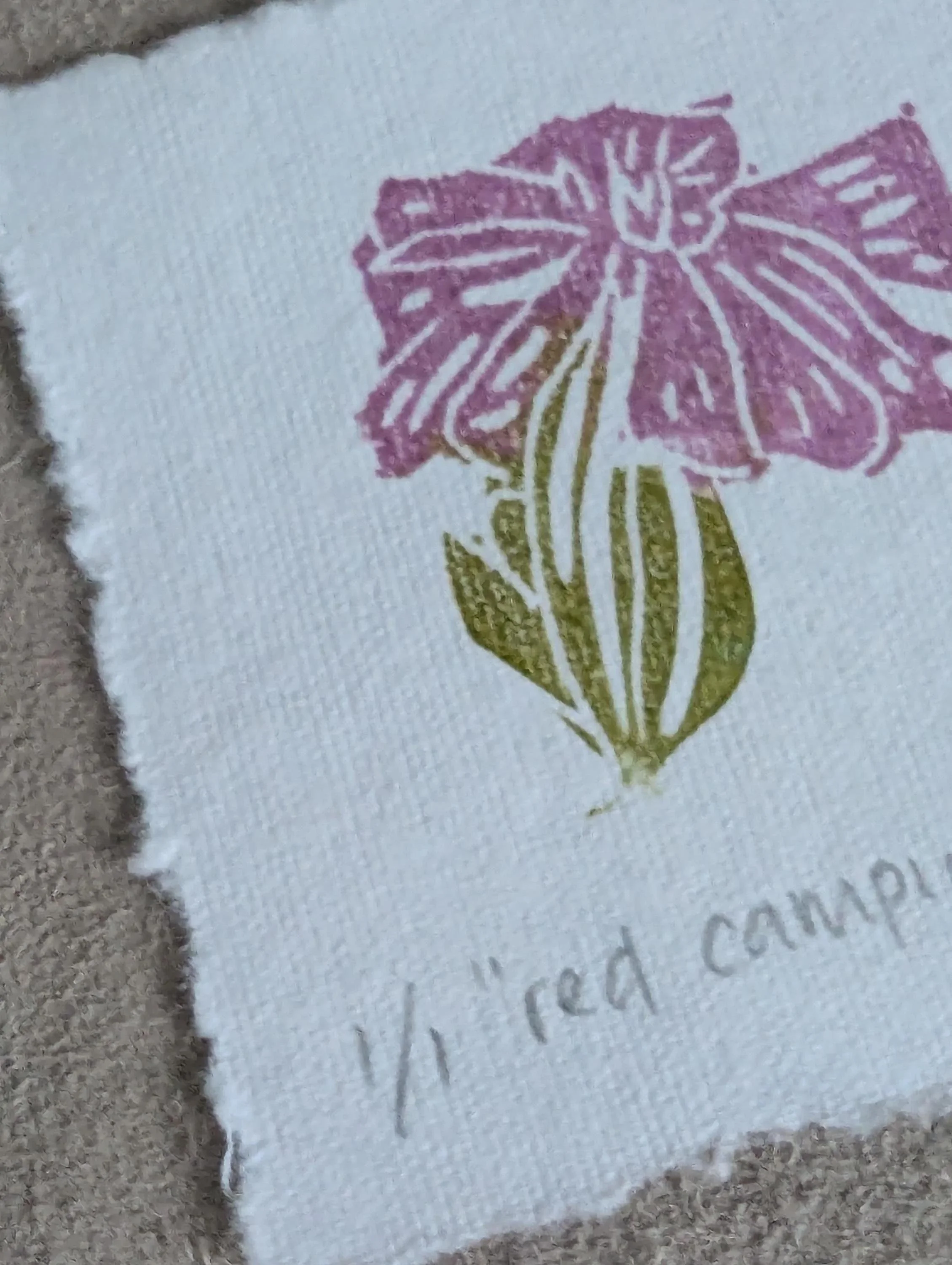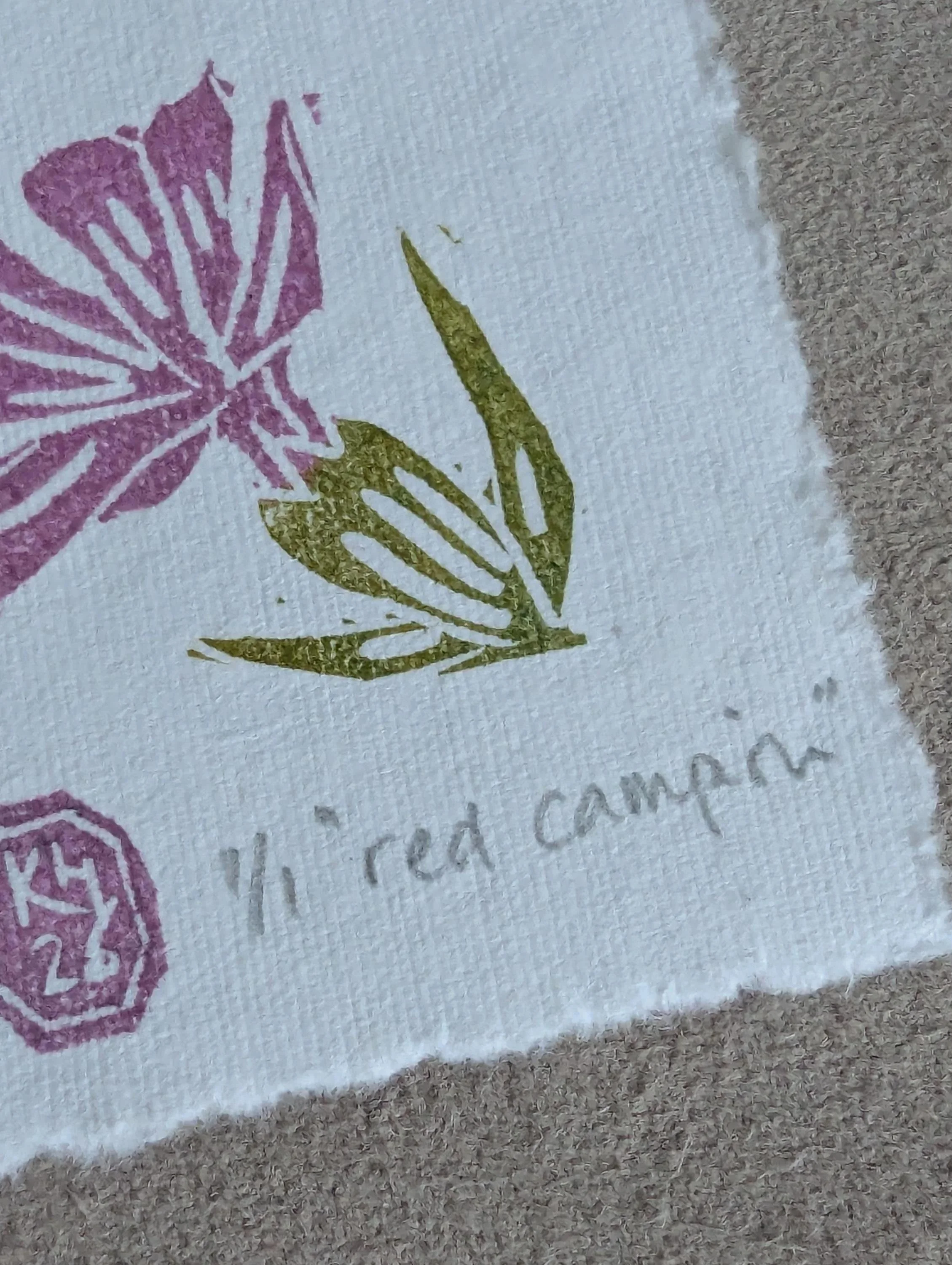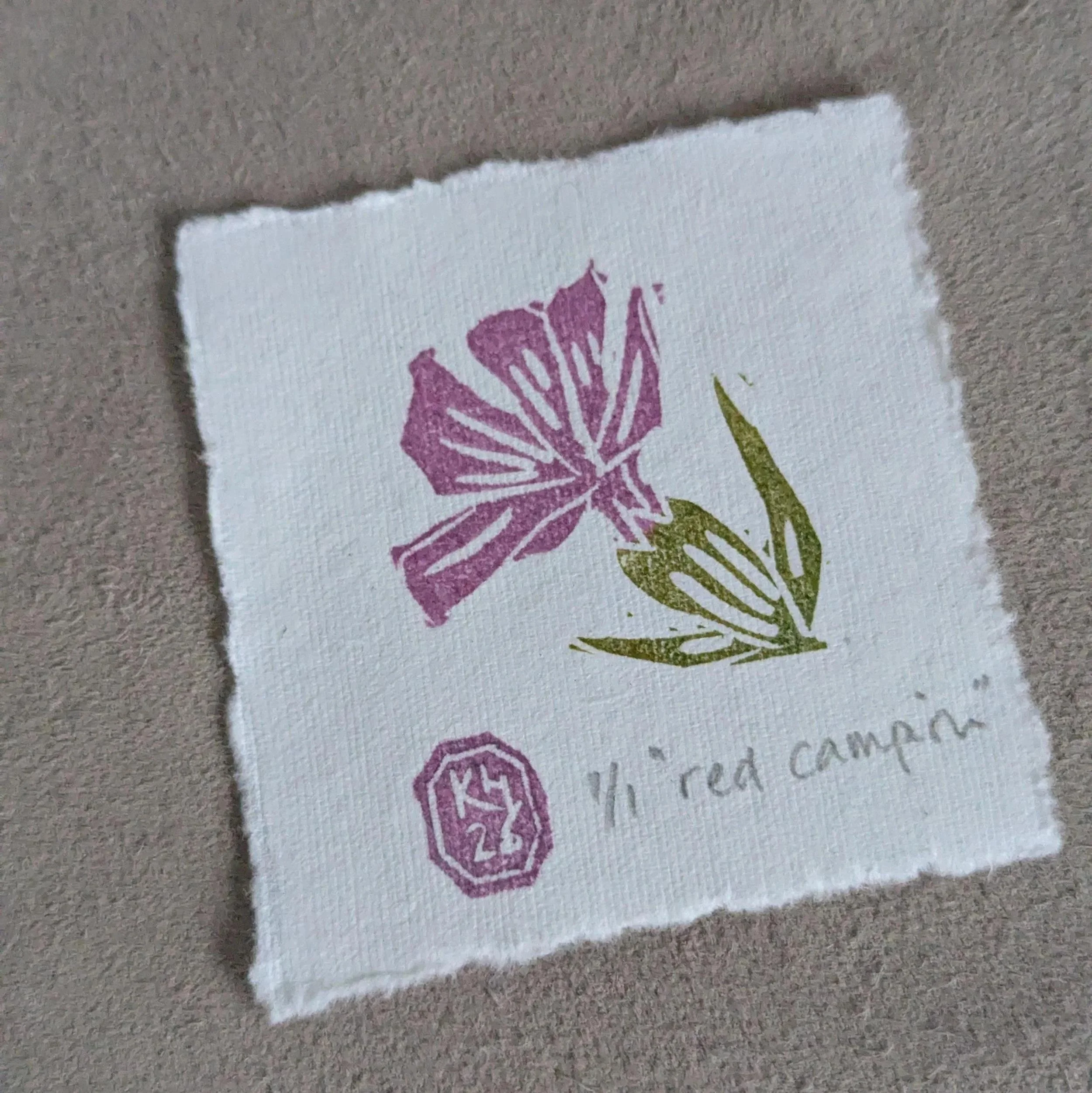 Printed by hand onto a soft powder blue cotton rag paper using hand-carved rubber blocks and archival inks. Each element has small differences in tone and texture, which is part of what makes it feel human and lived-in.