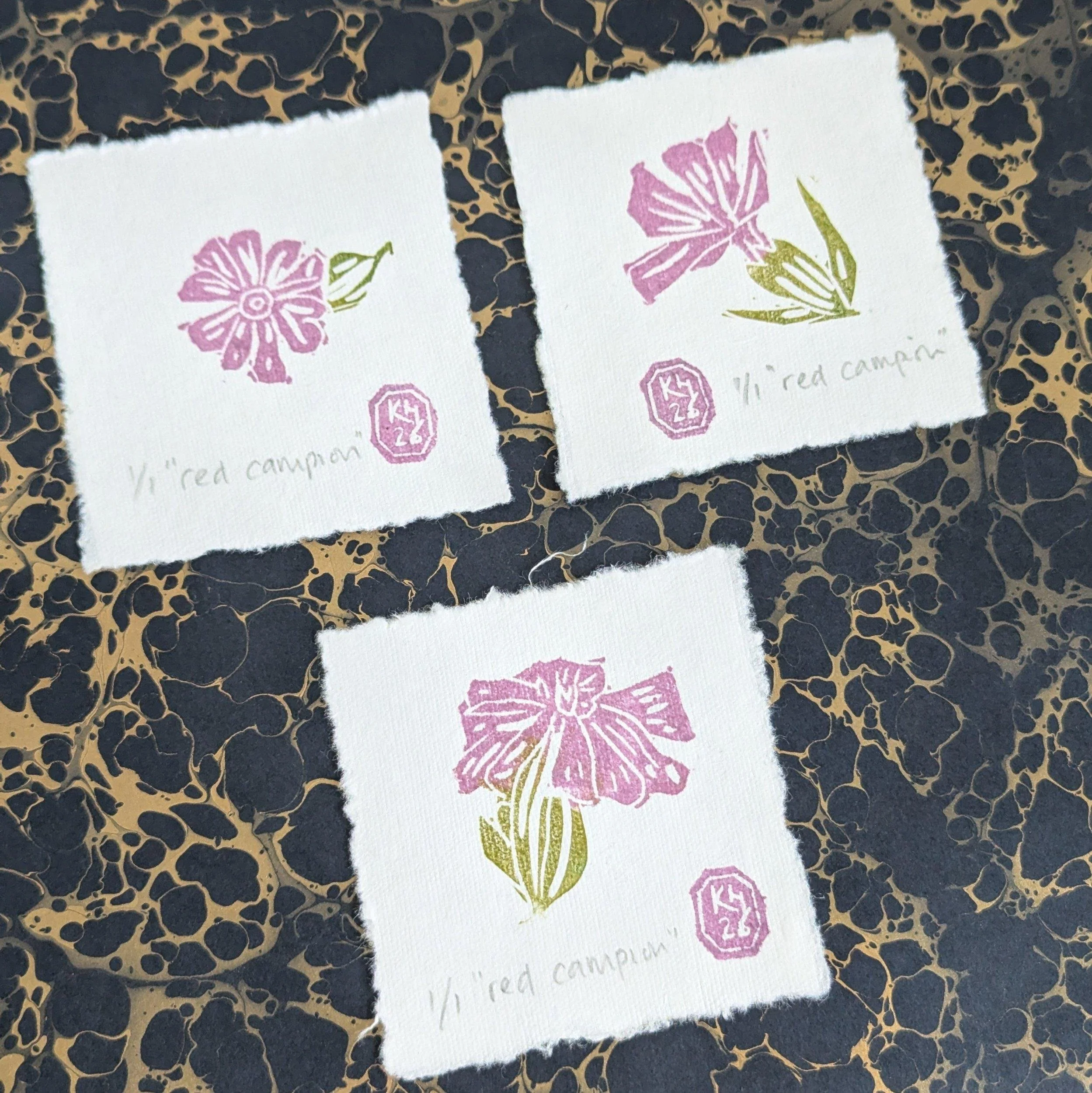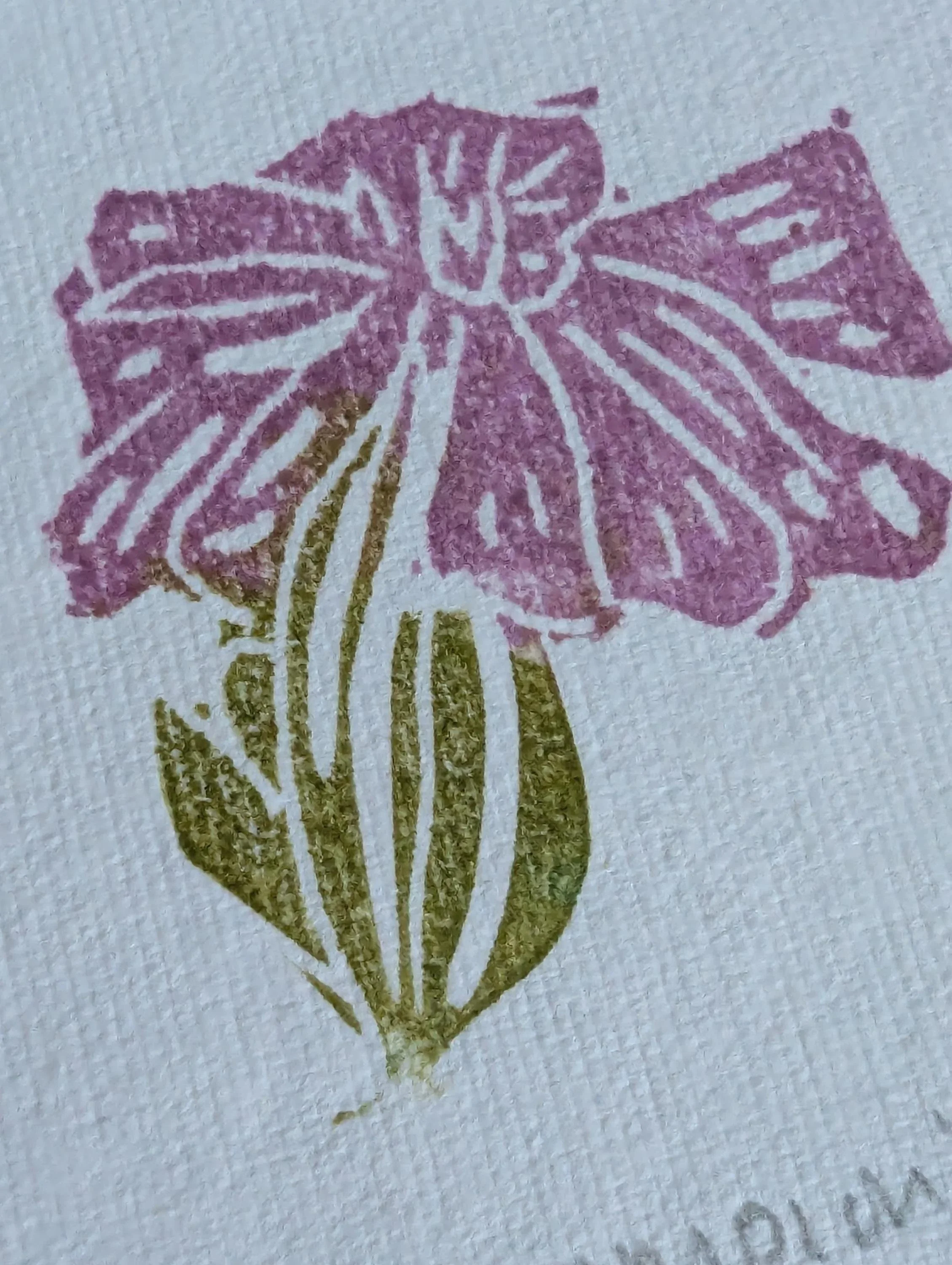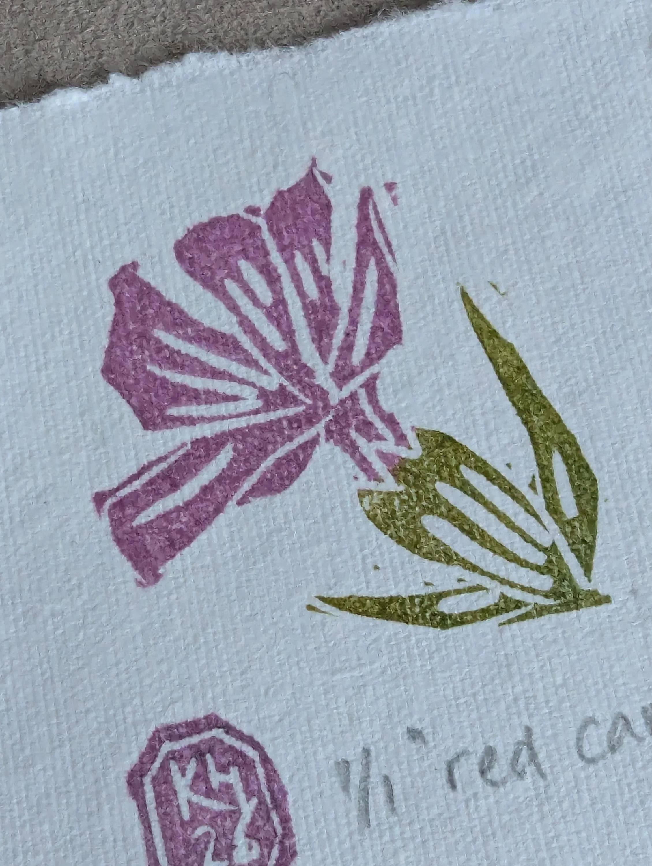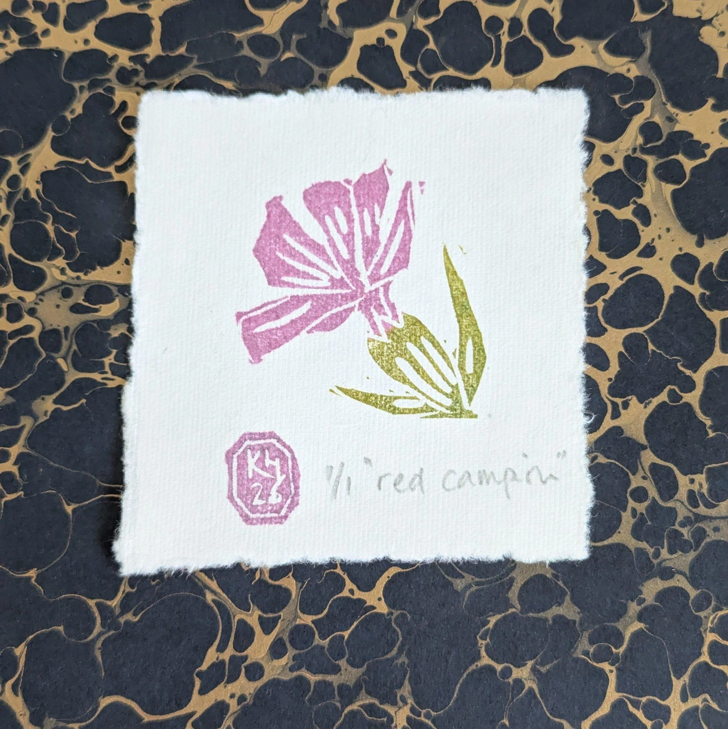 Printed by hand onto a soft powder blue cotton rag paper using hand-carved rubber blocks and archival inks. Each element has small differences in tone and texture, which is part of what makes it feel human and lived-in.