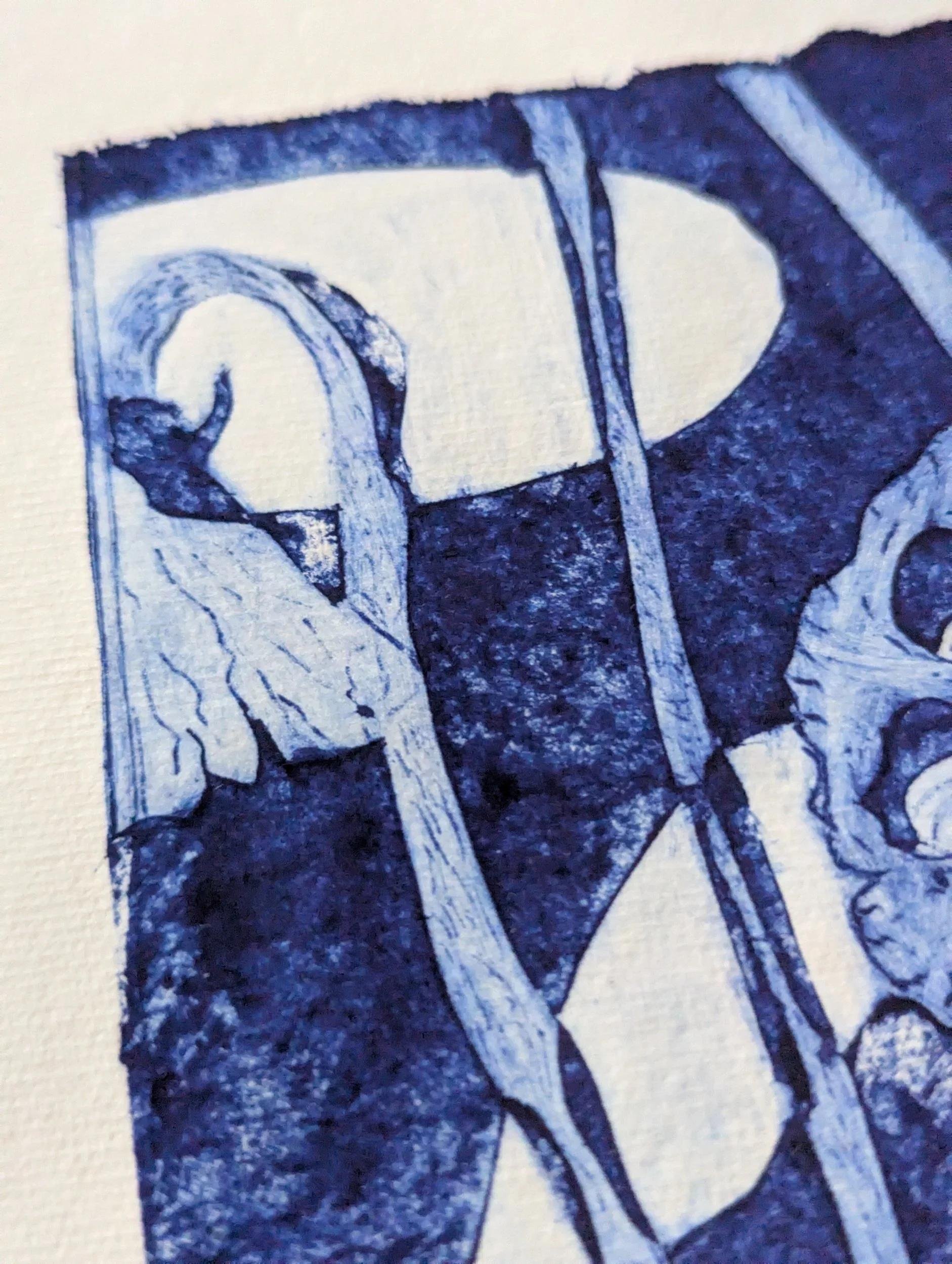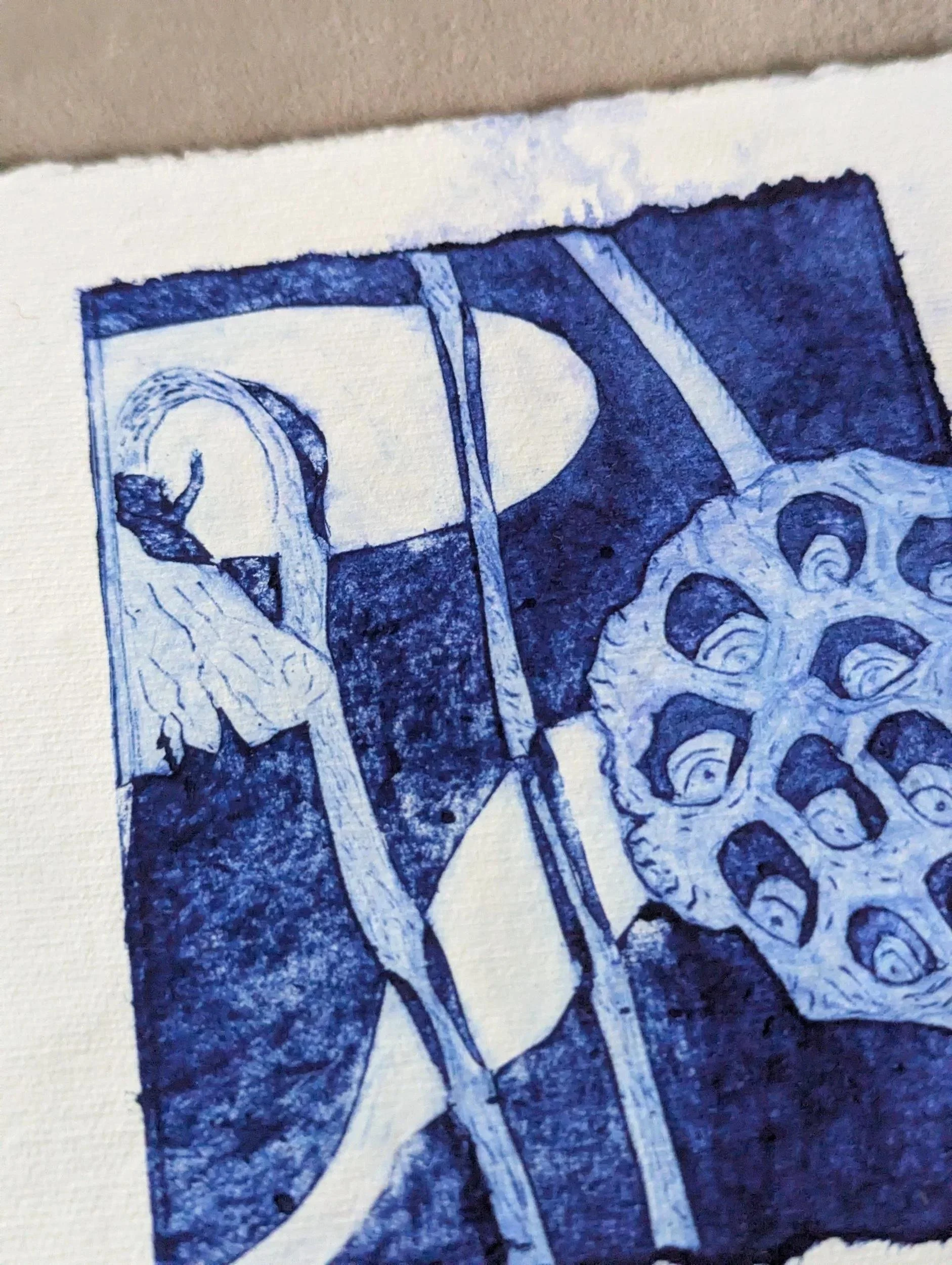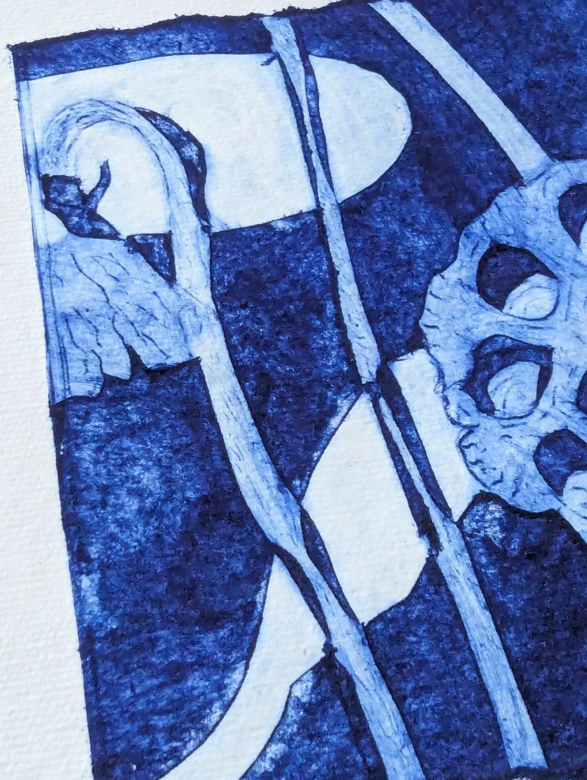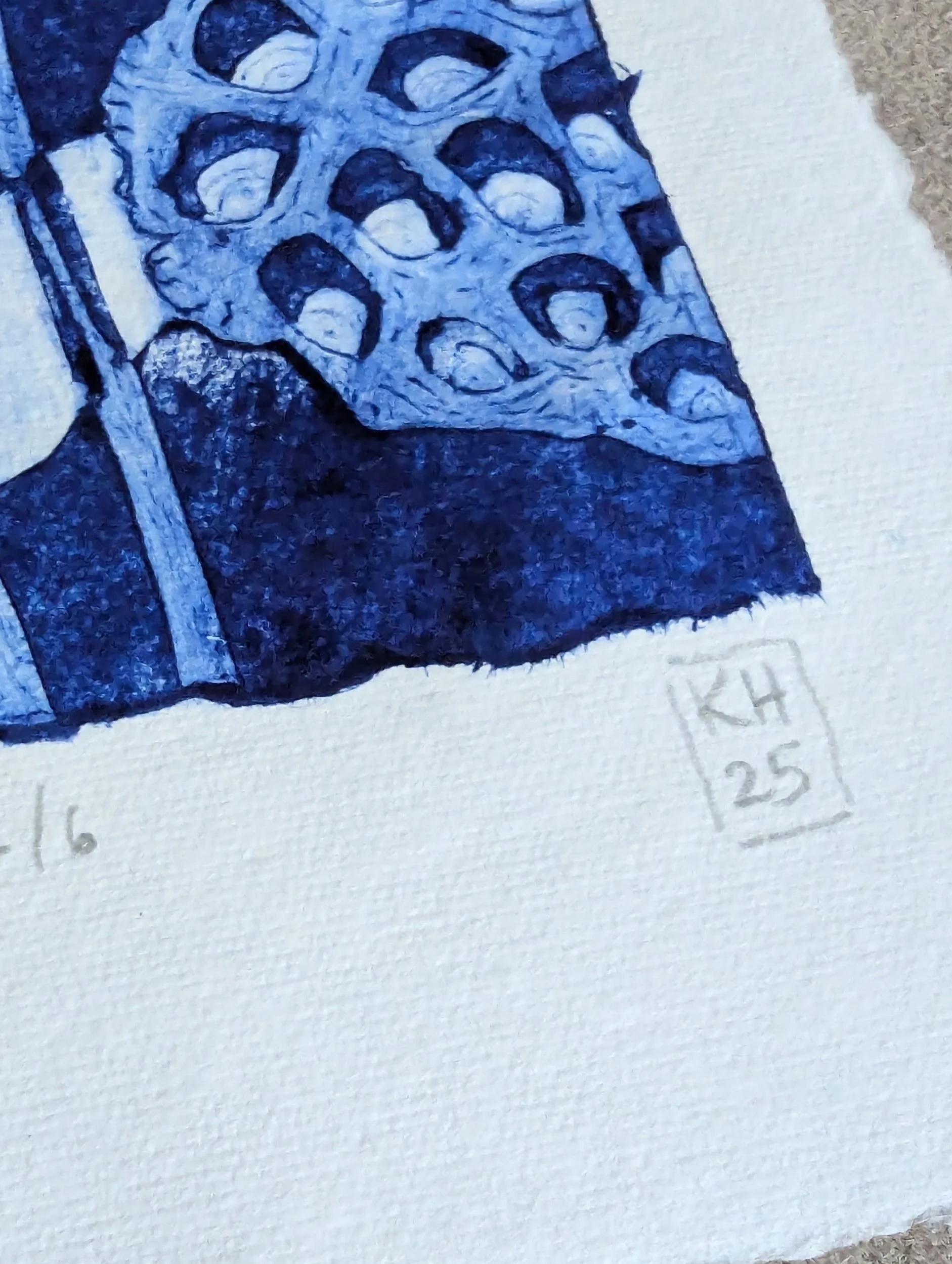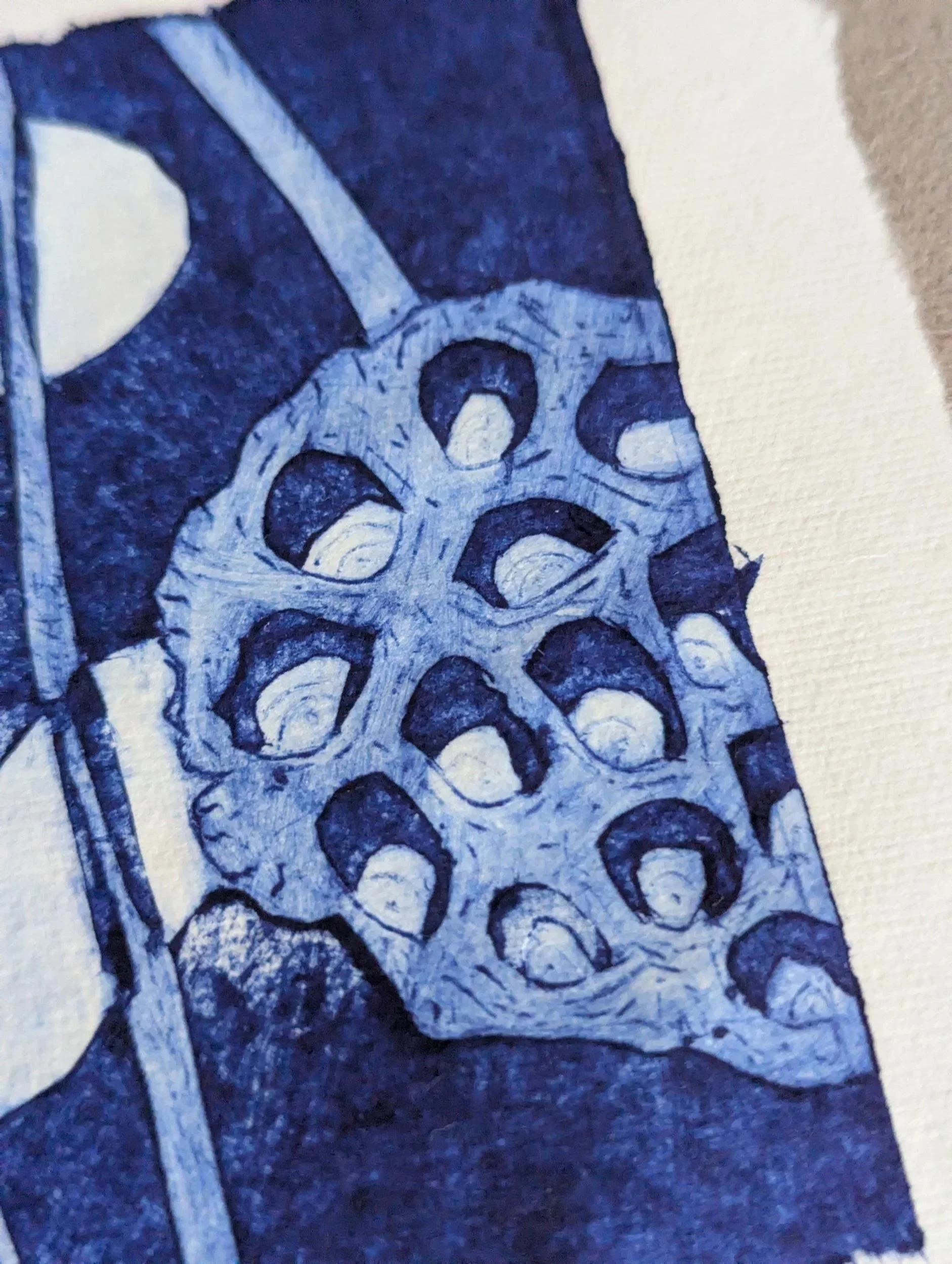 The printing plate for this delicate, architectural poppy seedhead was made from a juice carton. With tetrapak printing you inscribe the plate and remove the surface to create the lines and darker areas - roll on your ink and then wipe anything you want to be white off. I tore the edges of the plate to add visual interest.