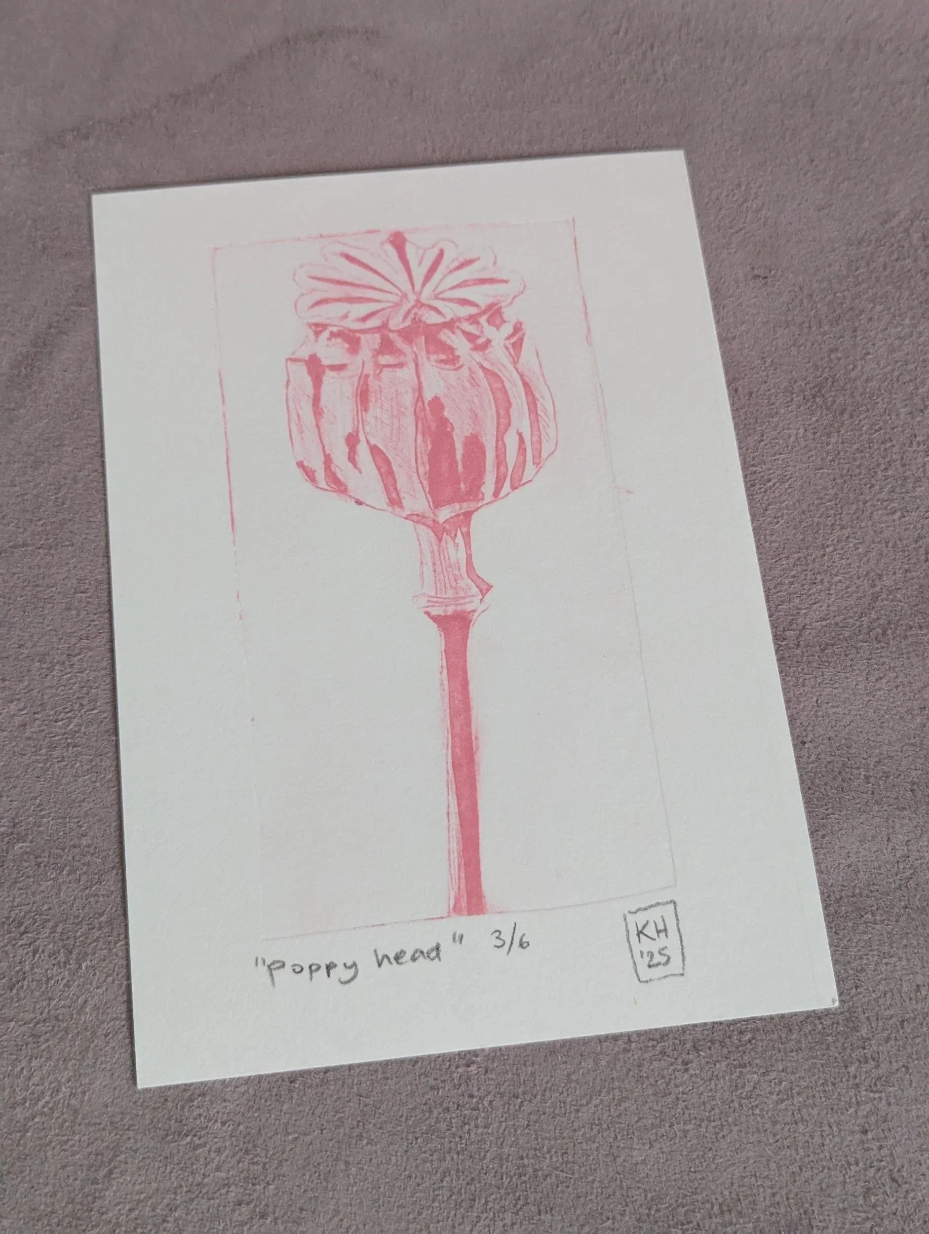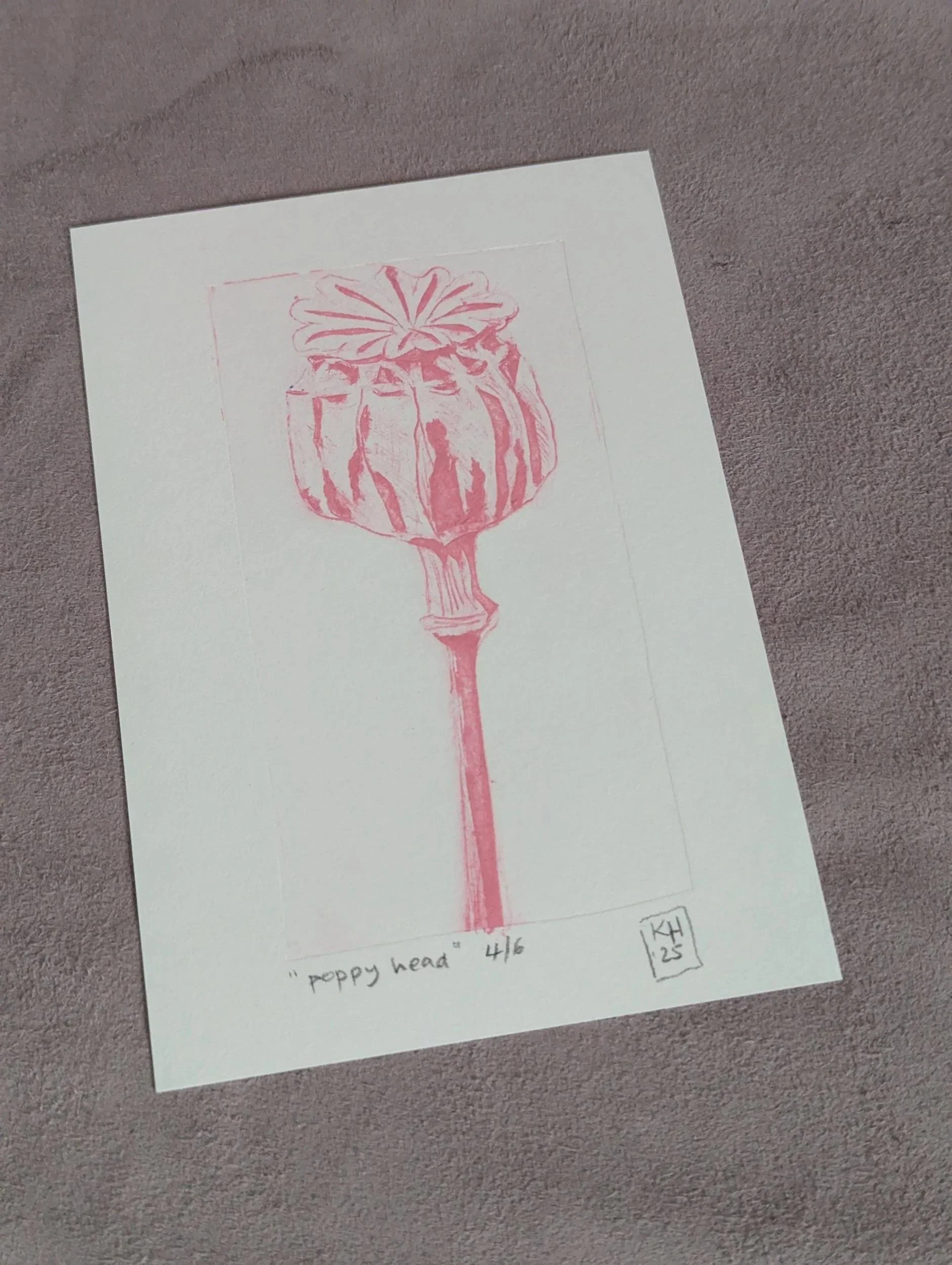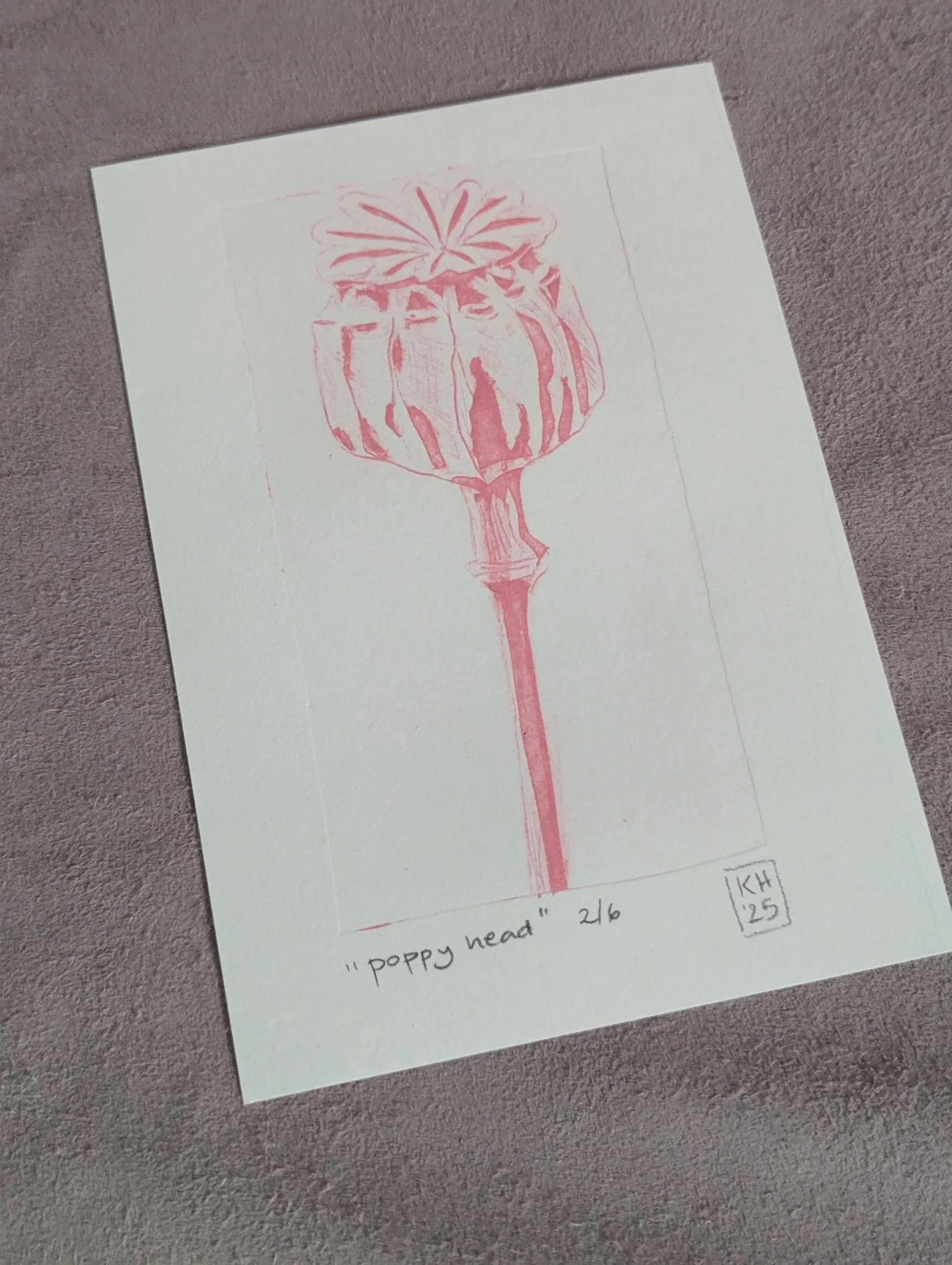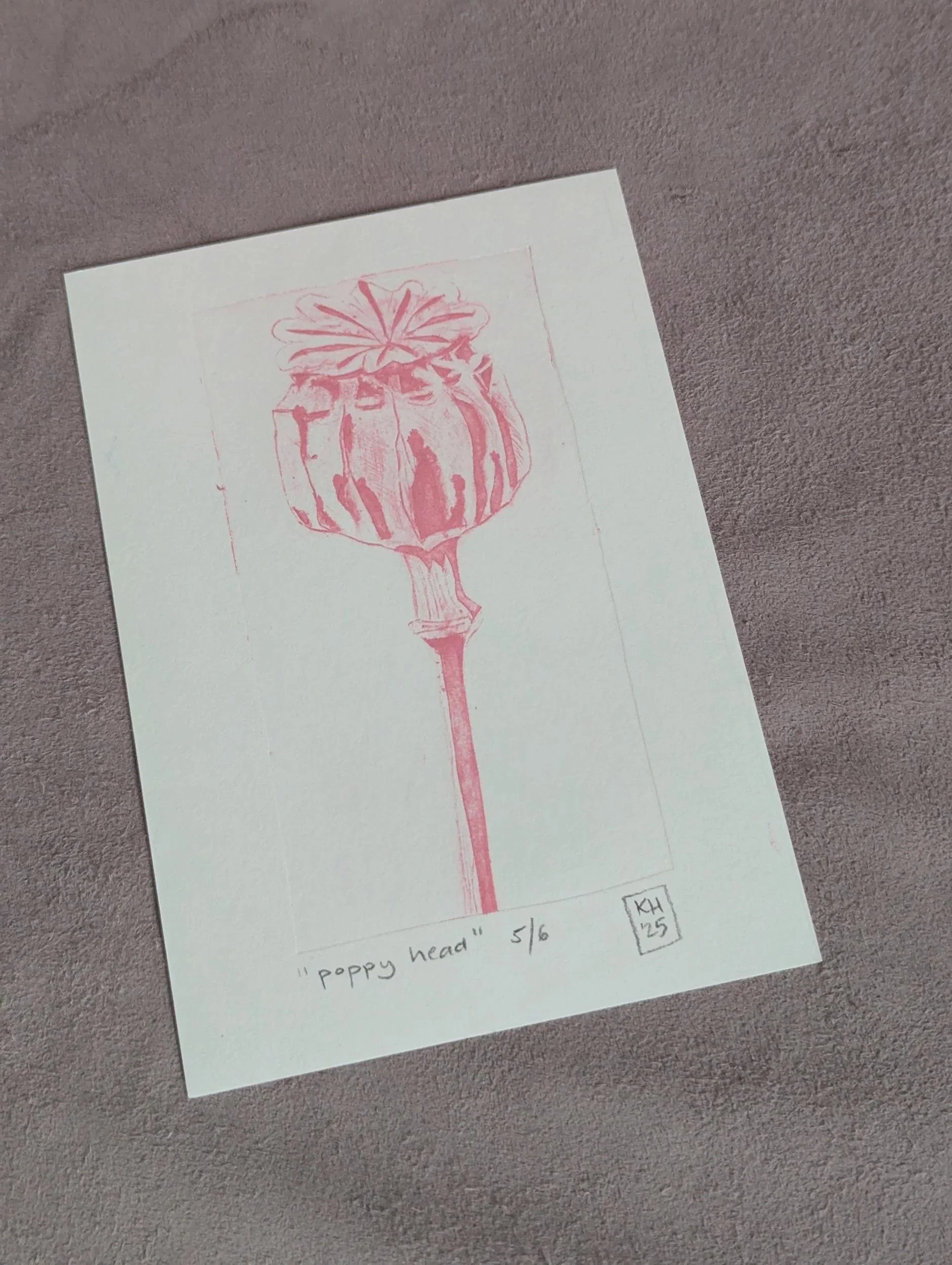 Poppy Seedhead - limited edition unframed collograph tetrapak print