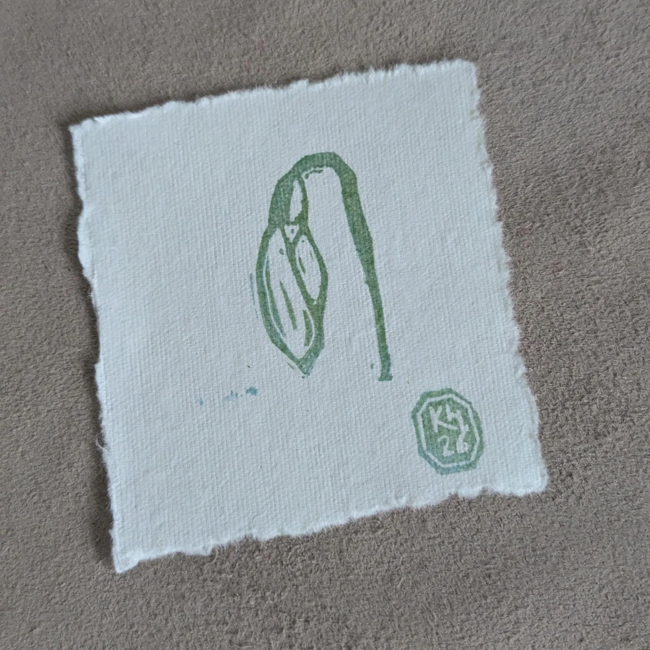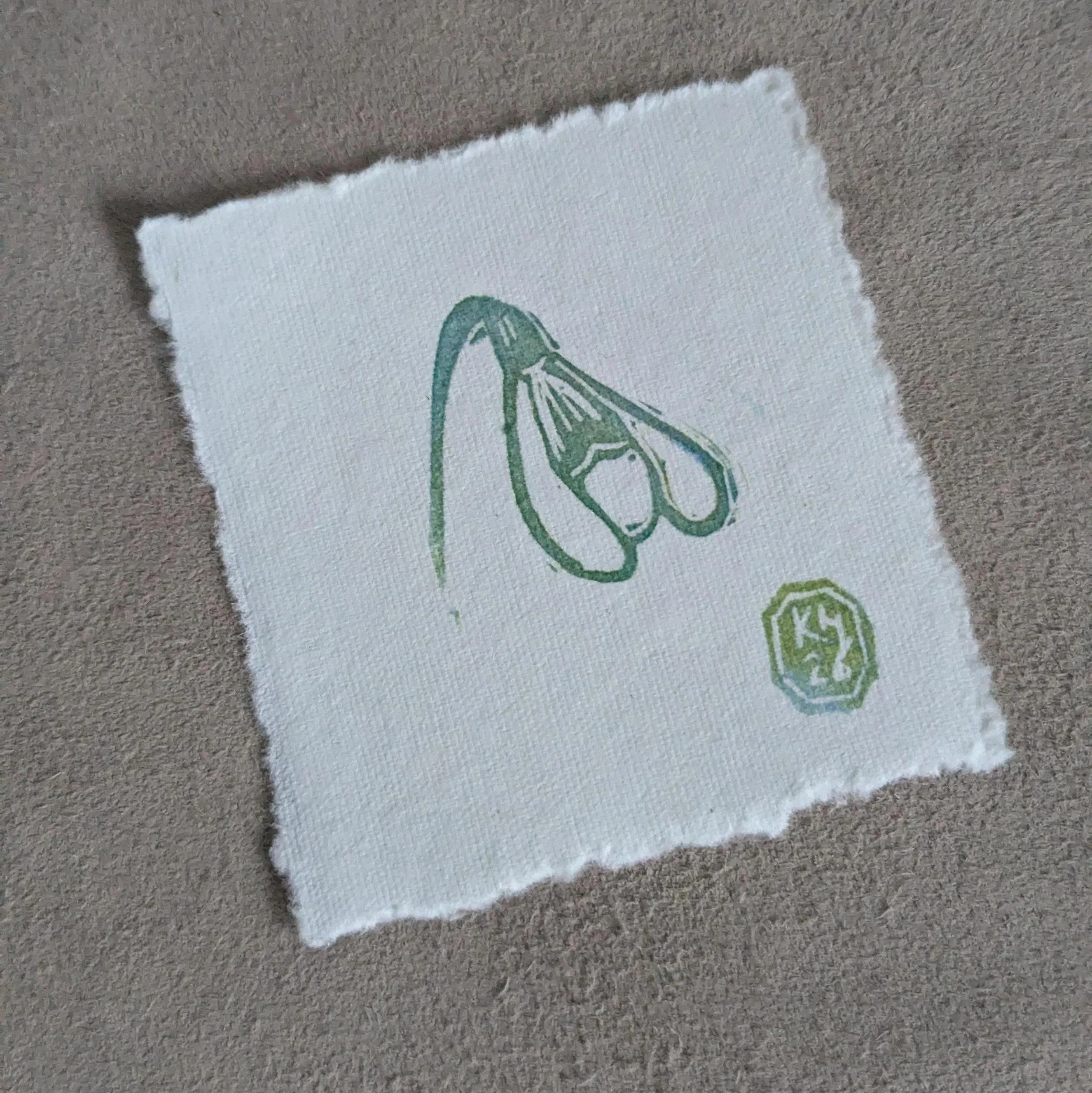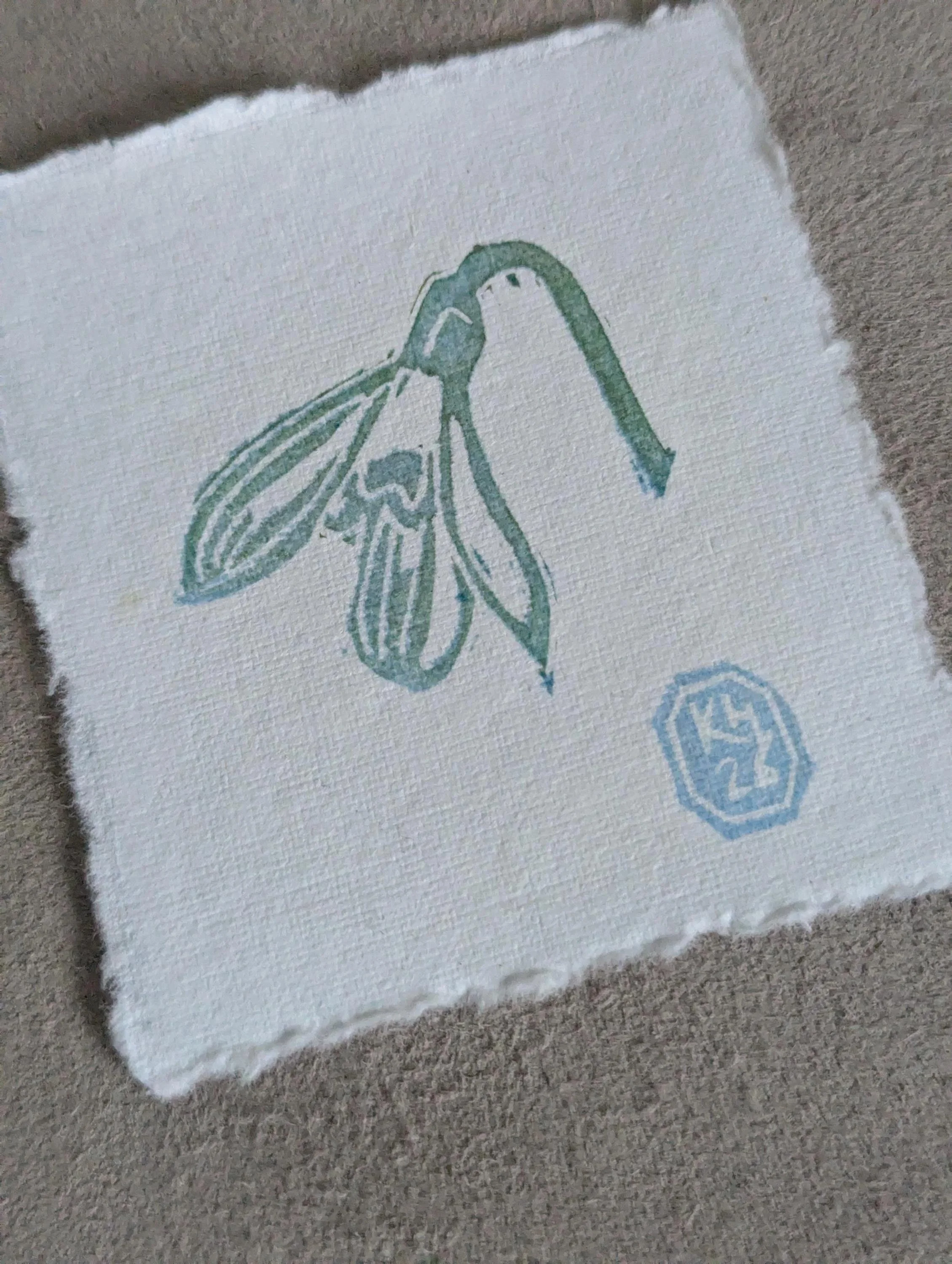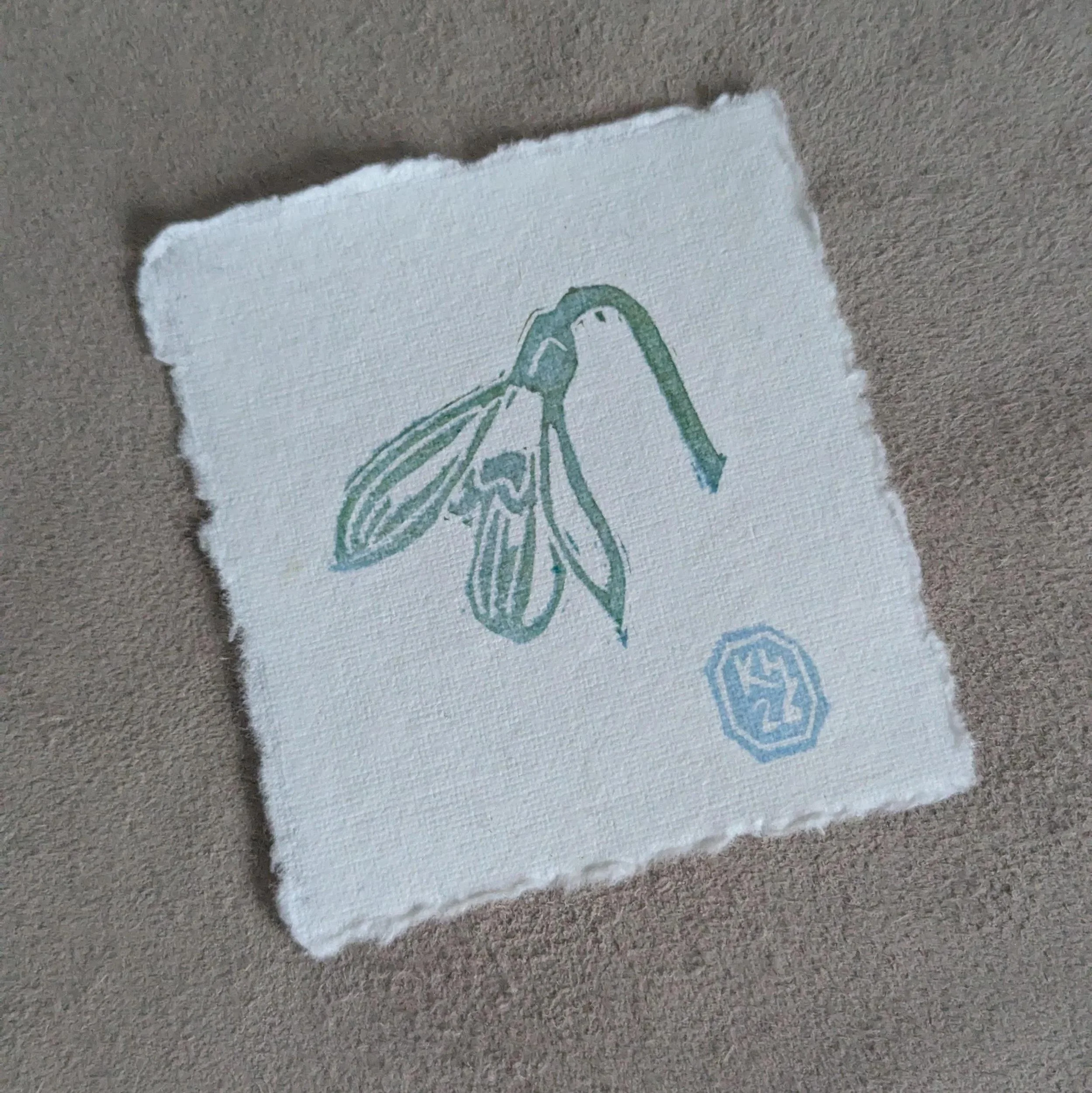 This hand-printed piece features a pair of graceful and sculptural snowdrops. It's a sight that always makes me smile because it heralds sunshine and warmer days being on the way after the dreariness of winter. This is a piece to uplift the soul and bring joy.