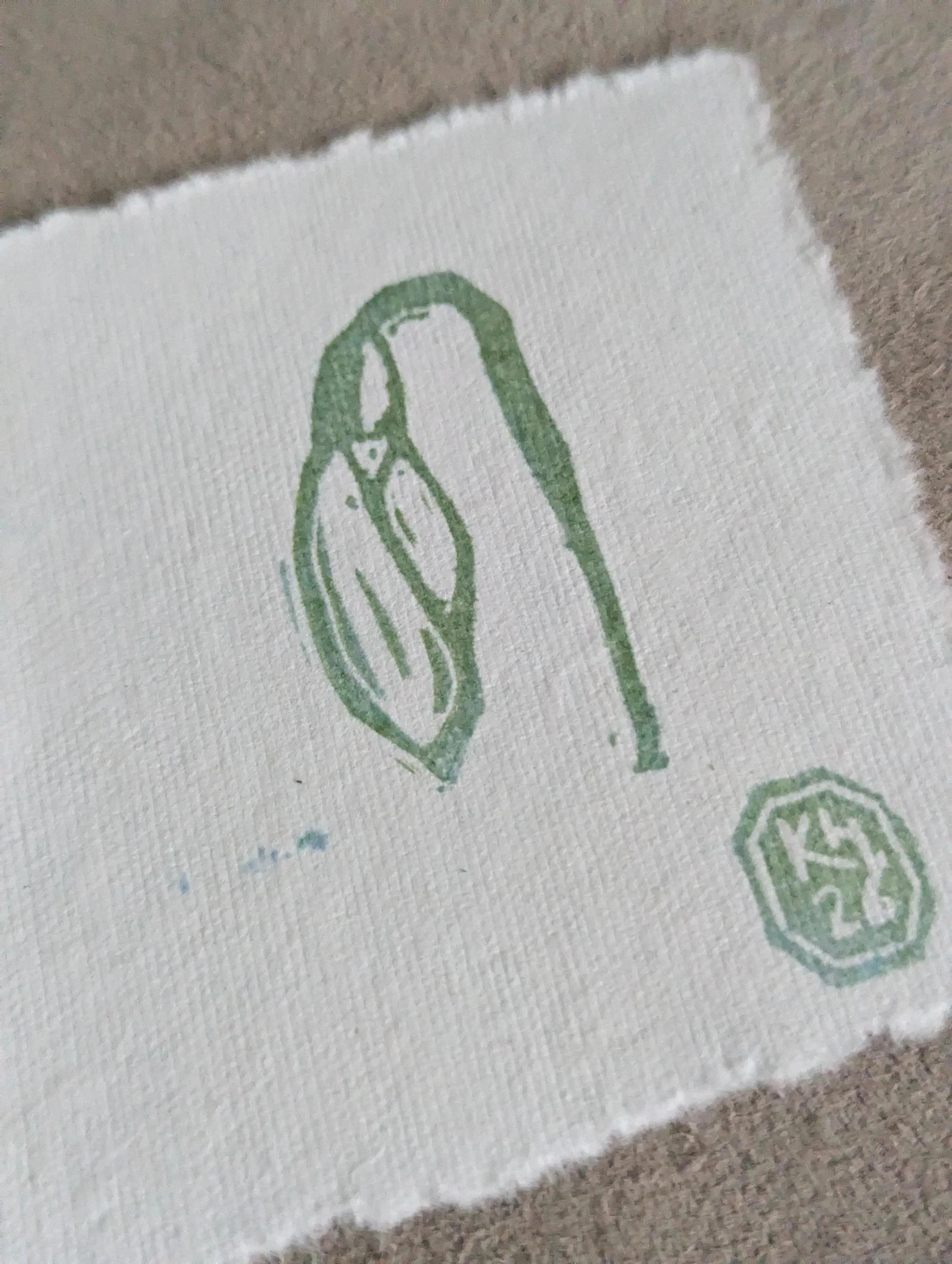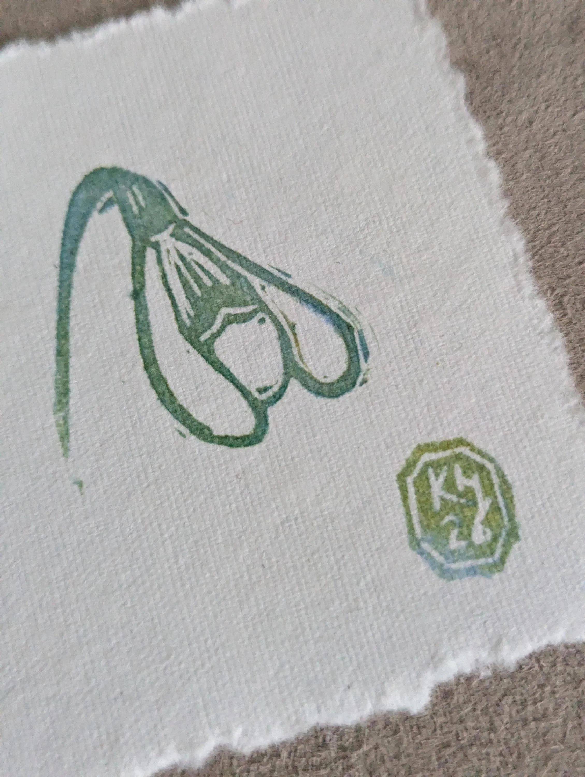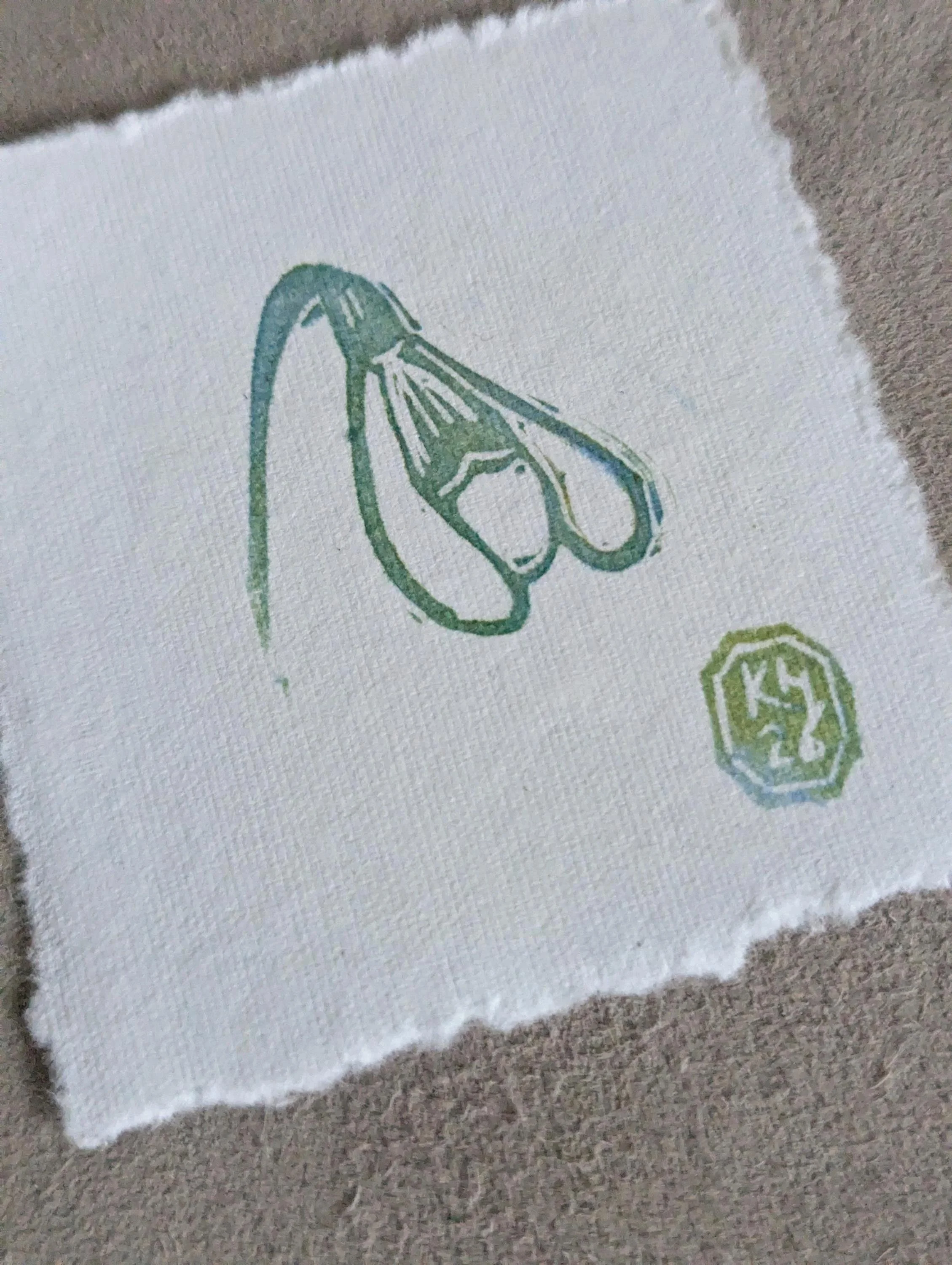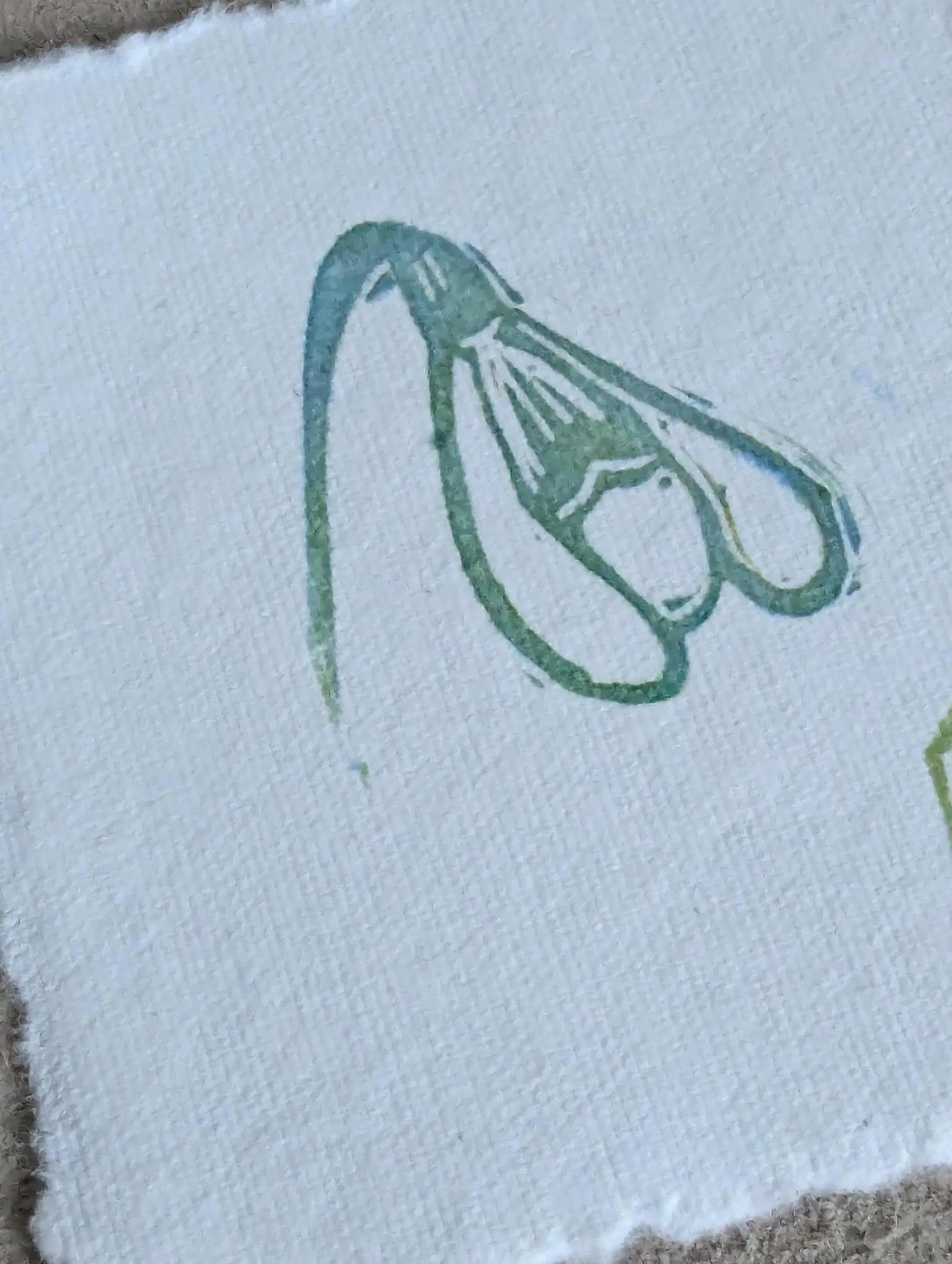 This hand-printed piece features a pair of graceful and sculptural snowdrops. It's a sight that always makes me smile because it heralds sunshine and warmer days being on the way after the dreariness of winter. This is a piece to uplift the soul and bring joy.